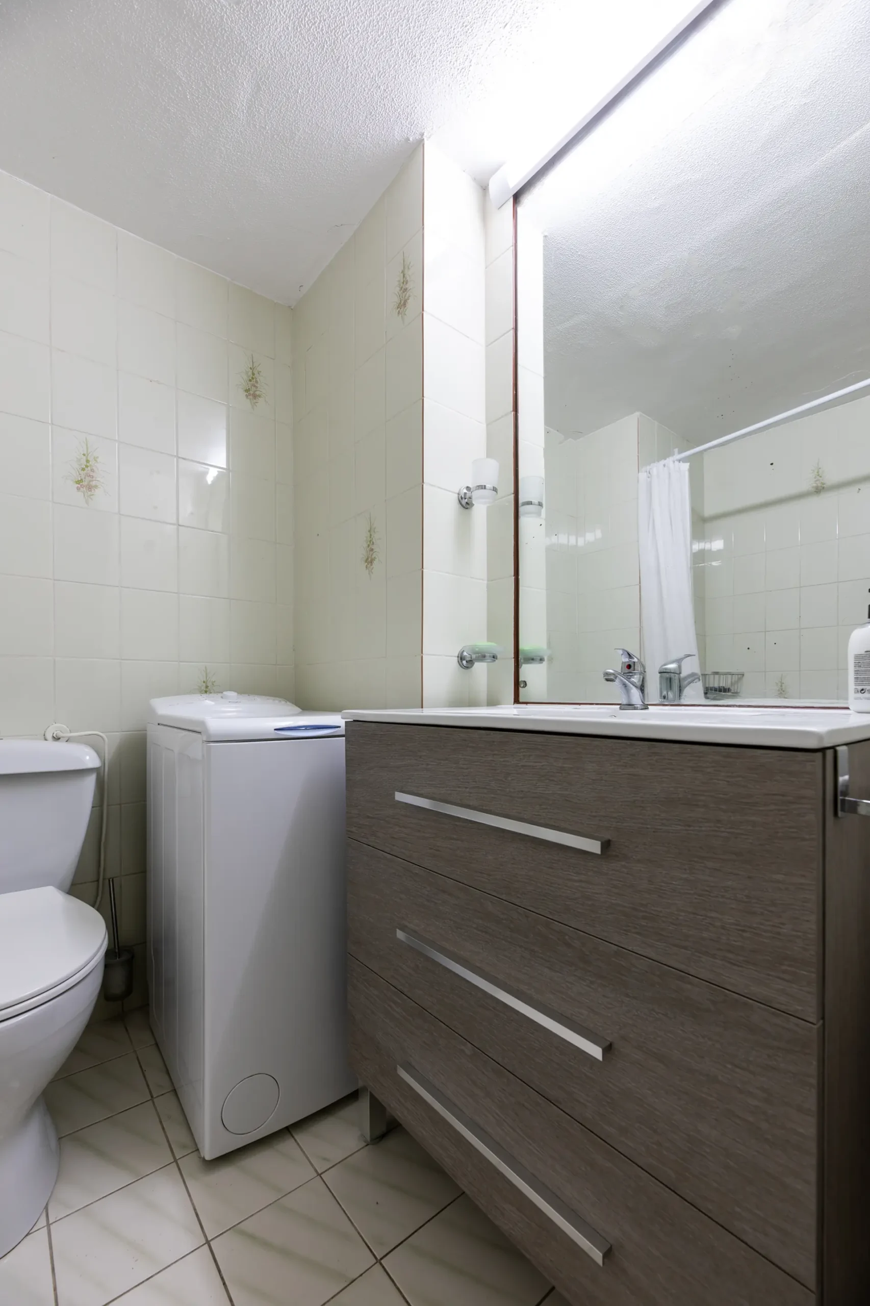 The studio includes a practical kitchenette and a washing machine. You can cook simple meals, store food, prepare snacks, and wash your clothes during longer stays. This helps you save money and makes daily life easier.